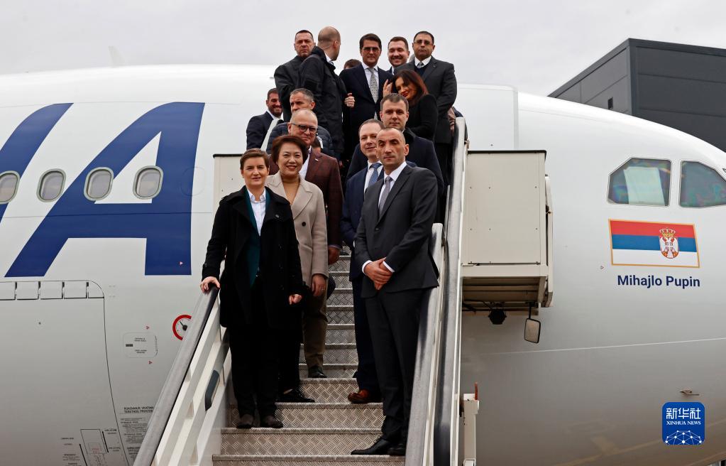 12月9日,塞爾維亞總理布爾納比奇(前左)在貝爾格萊德出席塞爾維亞航空貝爾格萊德-天津直航首航儀式。