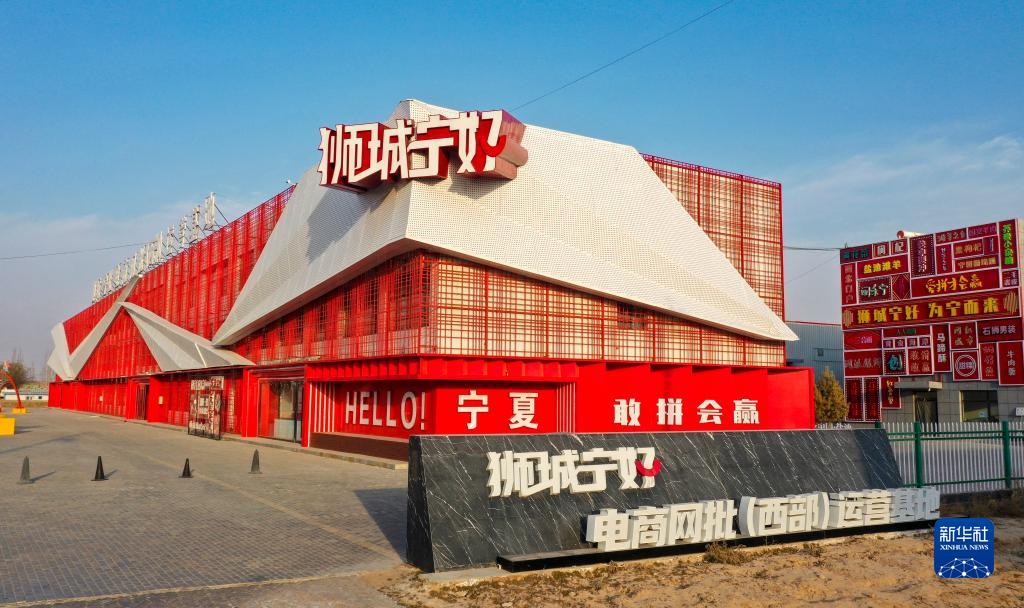 這是12月9日拍攝的位于寧夏鹽池縣的獅城寧好電商網批(西部)運營基地(無人機照片)。