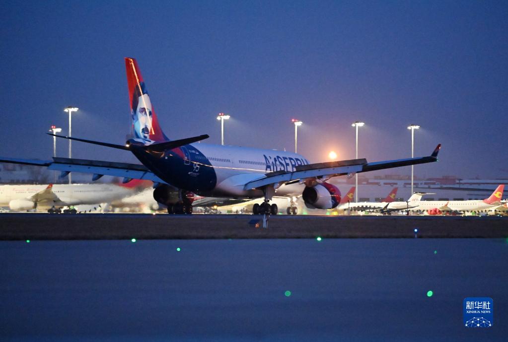 當日,搭載約170名旅客的JU702航班在天津濱海國際機場順利落地,標志著“貝爾格萊德-天津”直飛航線正式開通。