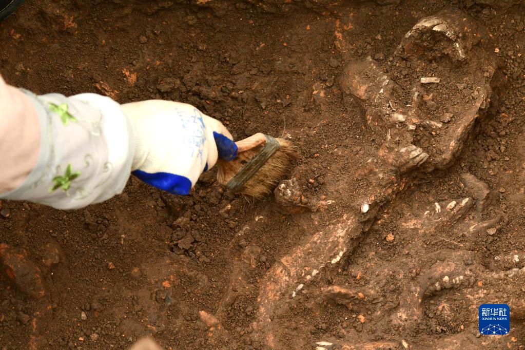 12月10日,工作人員在河南南陽黃山遺址考古發掘現場作業。