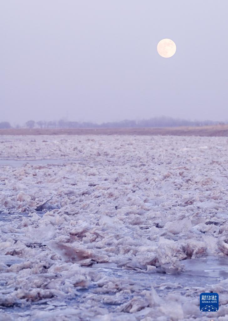 12月7日拍攝的內蒙古鄂爾多斯市達拉特旗冰封黃河景象(多張合成)。