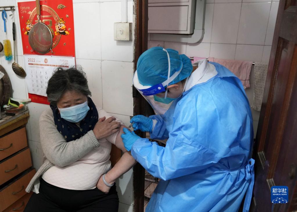 接種小分隊的護士上門為出行不便的徐阿姨接種疫苗(12月5日攝)。