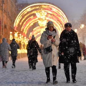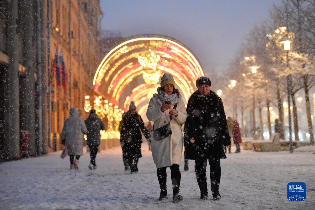12月10日,在俄羅斯莫斯科,人們在雪中行走。