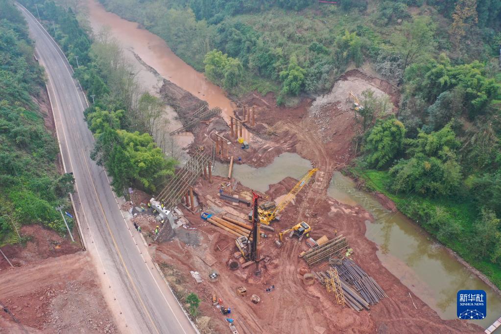 這是12月11日拍攝的由中鐵北京工程局承建的成達萬高鐵南河大橋施工現場(無人機照片)。