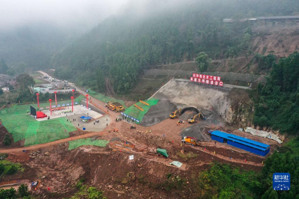 這是12月11日拍攝的由中鐵北京工程局承建的成達萬高鐵光明隧道施工現場(無人機照片)。
