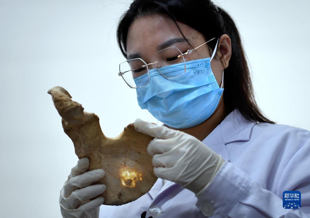 李彥楨在河南省文物考古研究院的工作室內觀察骸骨標本(11月30日攝)。