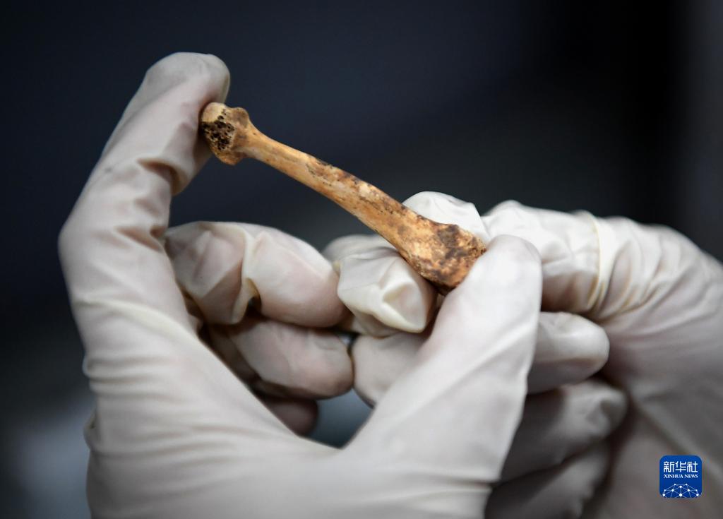 李彥楨在河南省文物考古研究院的標本庫內觀察纏足后的女性足骨(11月30日攝)。