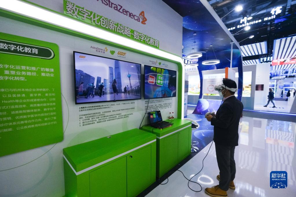 12月11日,在首屆全球數字貿易博覽會現場,參觀者在體驗數字化教育服務。