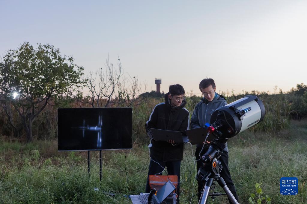 9月21日凌晨,劉博洋(左)展示當日拍攝的中國空間站過境畫面。