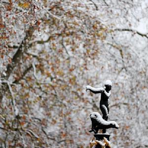 12月12日,人們在英國“倫敦眼”附近的雪地上行走。