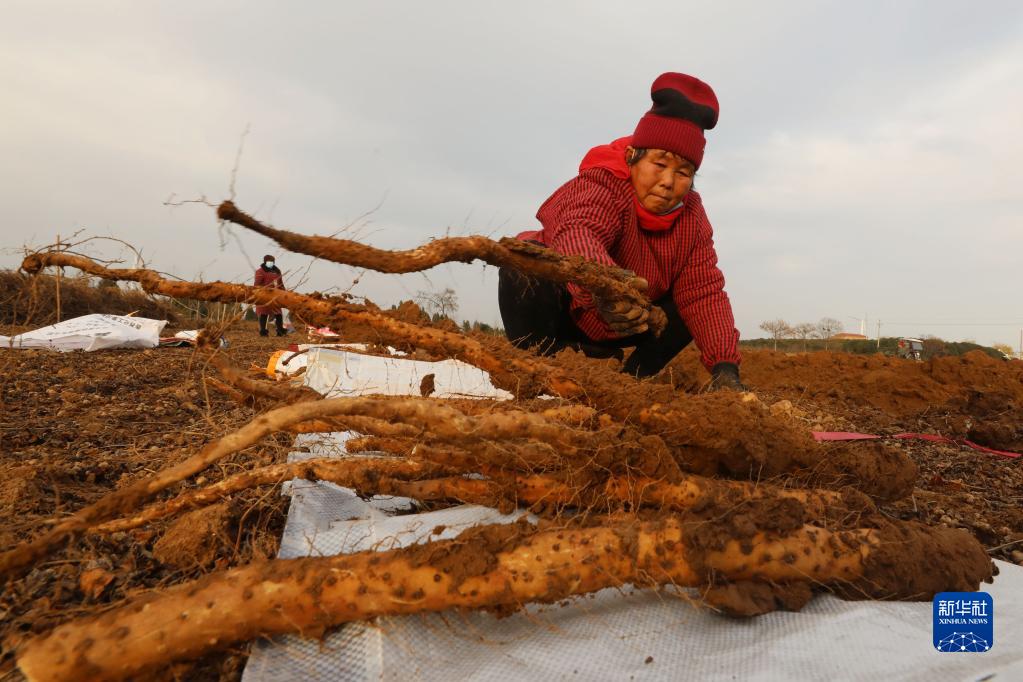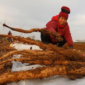 時下,河南省焦作市溫縣種植的鐵棍山藥進入收獲季,當地農民忙著采收、加工、銷售。