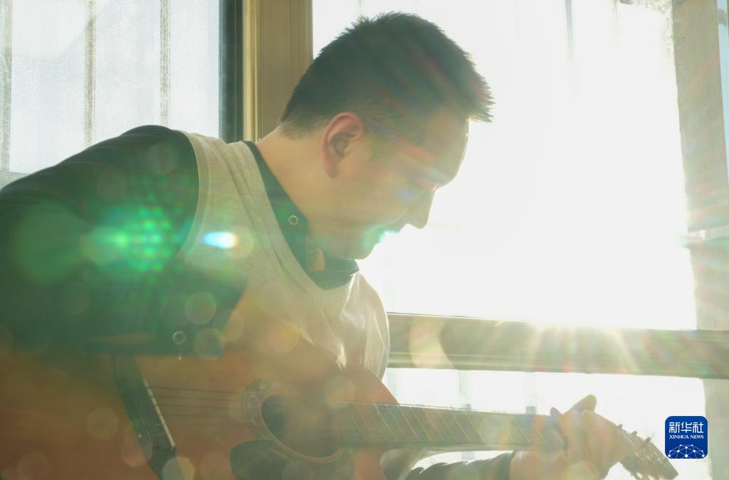 如今,蔡成有了兩個可愛的女兒和溫馨的家庭,熱愛快板藝術的他也當起了快板老師,不時帶著孩子們踢球、打快板,彈起吉他為妻子唱歌。