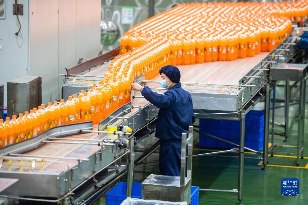 12月13日,在長沙頂津食品有限公司飲品生產車間,工作人員在檢查飲料品質。