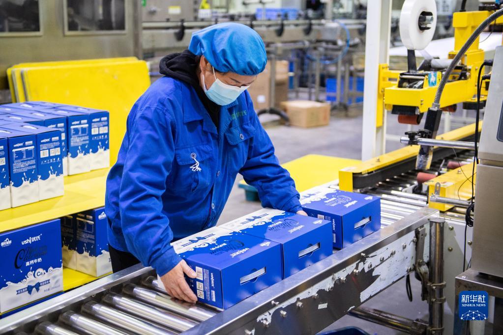 12月13日,在皇氏集團湖南優氏乳業有限公司飲品生產車間,工作人員在做成品出庫前檢查。