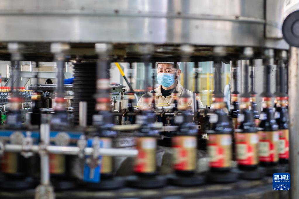 12月13日,在加加食品集團股份有限公司醬油生產車間,工作人員在檢查醬油品質。