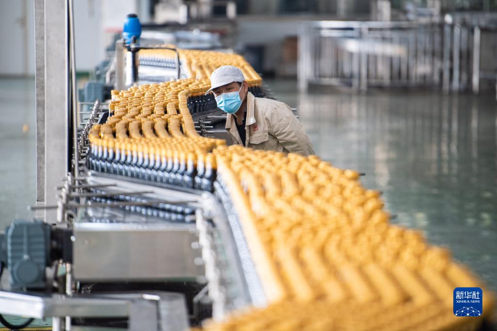 12月13日,在加加食品集團股份有限公司醬油生產車間,工作人員在檢查醬油品質。