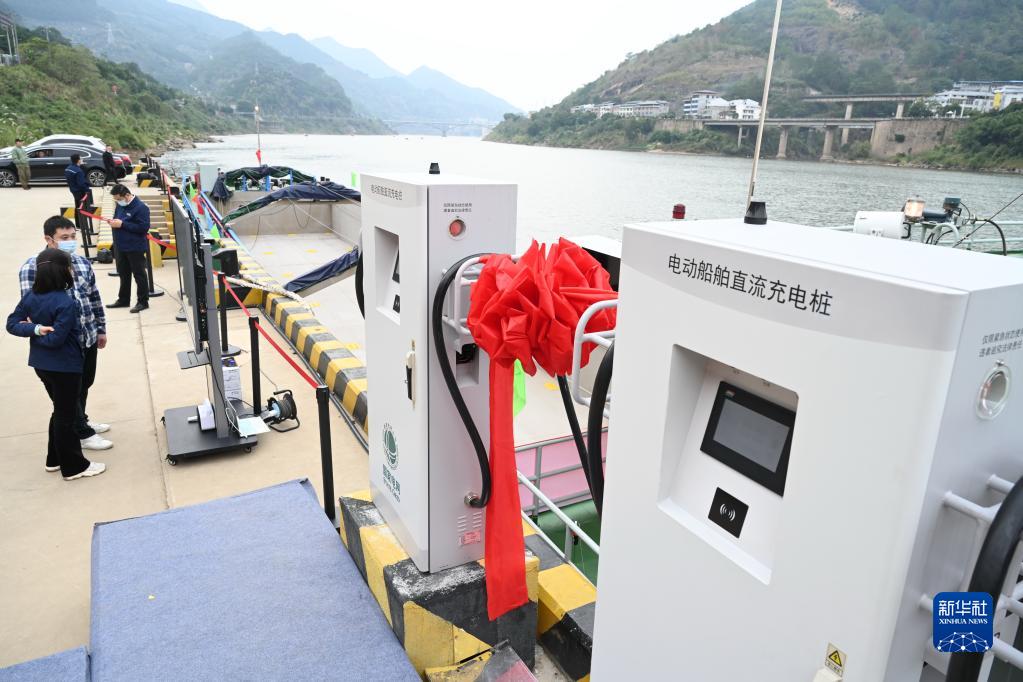 當日,福建“電動閩江”首個電動船舶直流充電示范場景在閩江水口壩區的海事碼頭正式啟用。它的投用將進一步加快福建內河船舶綠色智能發展,提升閩江航運質量效益。新華社記者 林善傳 攝