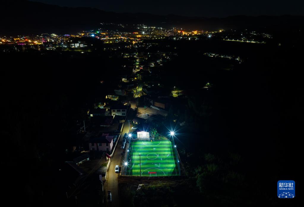 這是無人機拍攝的夜色中的云南省滄源佤族自治縣龍乃村足球場(12月7日攝)。