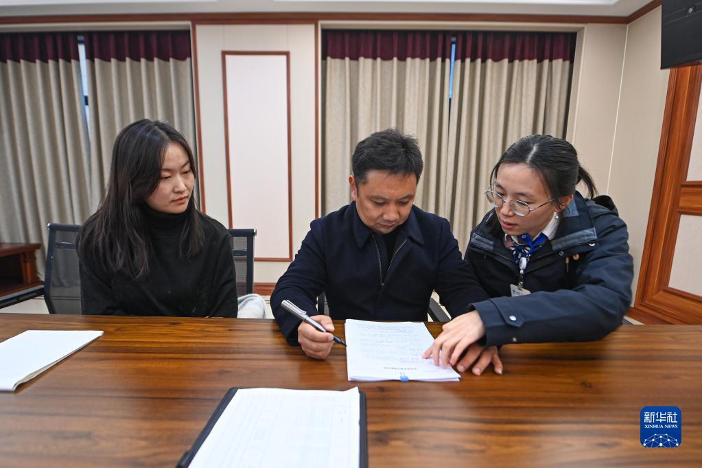 12月14日,陶朱街道駐企指導員(左)與諸暨農商銀行業務員(右)一同為企業主辦理業務。