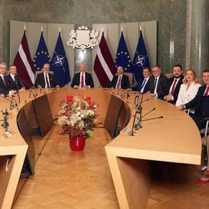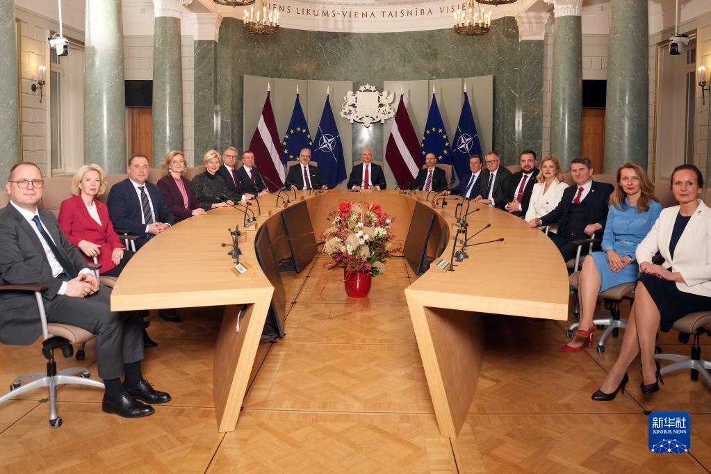12月14日,在拉脫維亞首都里加,拉總統萊維茨(左八)出席新一屆政府第一次會議。
