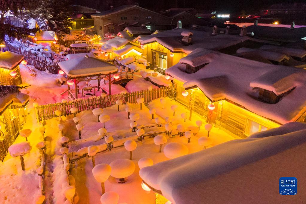 12月14日拍攝的雪鄉景區夜景(無人機照片)。