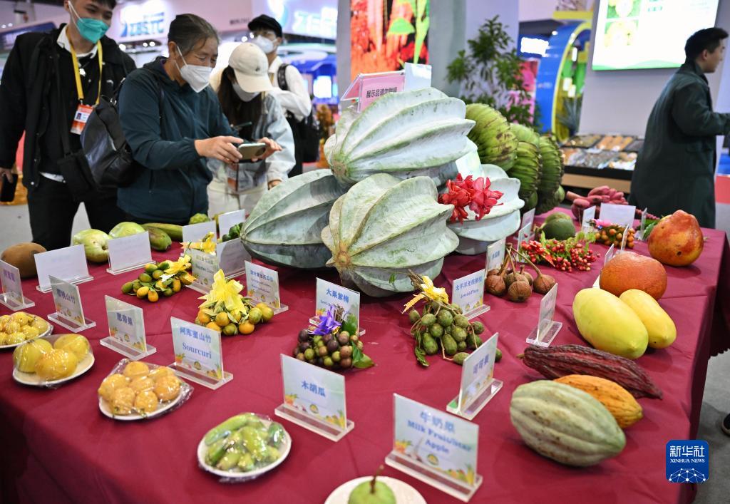 12月15日,觀眾參觀世界熱帶水果之窗展臺展示的熱帶水果。