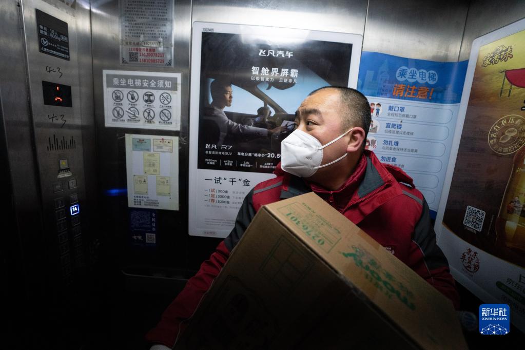 快遞小哥齊帥龍在配送貨物(12月15日攝)。