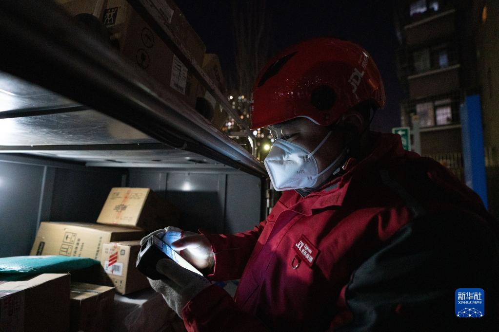 12月15日17時30分許,北京天色漸晚。在京東快遞天宮院營業部,剛抵達北京不到24小時的齊帥龍發動配送車,駛向約3公里外的新源時代小區,開始夜間派送。