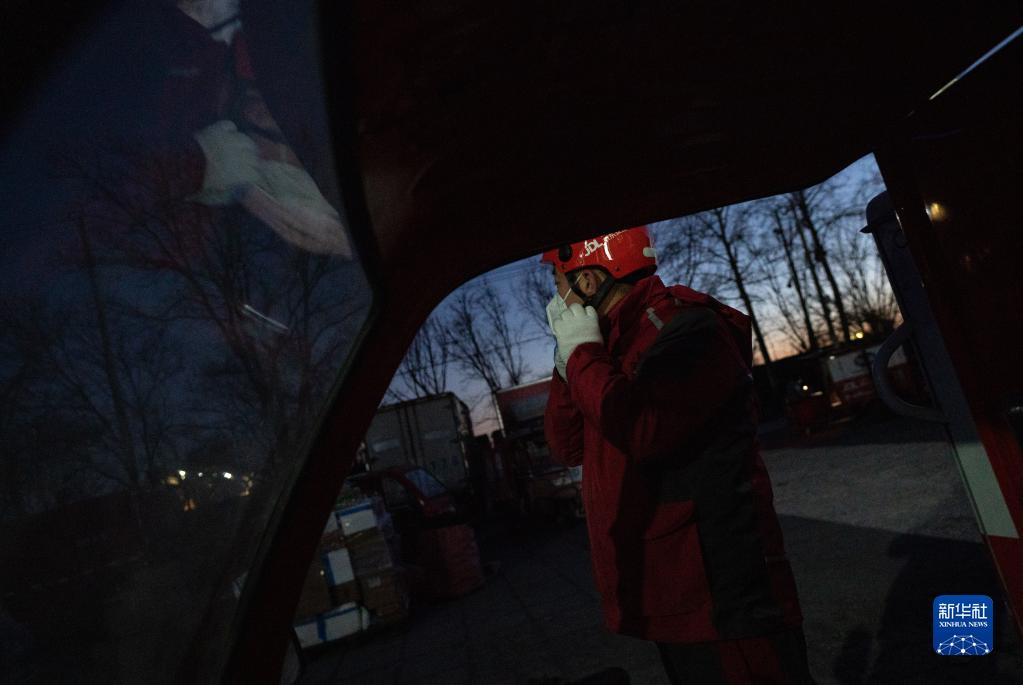 12月15日17時30分許,北京天色漸晚。在京東快遞天宮院營業部,剛抵達北京不到24小時的齊帥龍發動配送車,駛向約3公里外的新源時代小區,開始夜間派送。