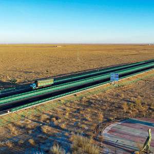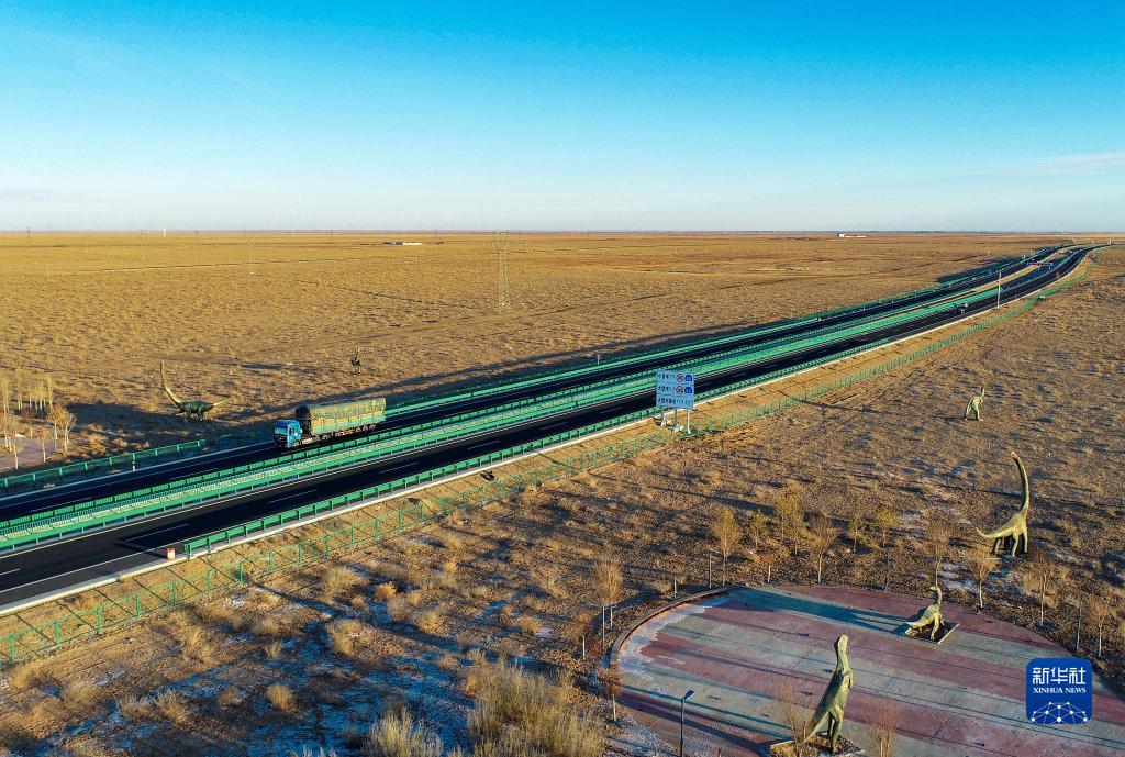 12月16日,車輛在二廣高速內蒙古二連浩特至賽漢塔拉段上行駛(無人機照片)。