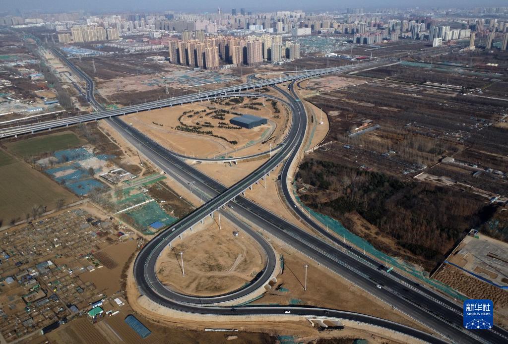 12月15日拍攝的已竣工通車的石家莊市南二環東延與復興大街互通立交橋(無人機照片)。