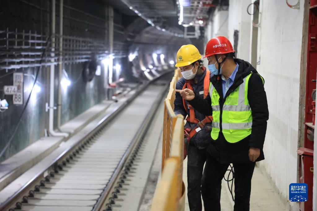 12月16日,中鐵五局建設者在貴陽軌道交通三號線東風鎮站內巡視檢查。