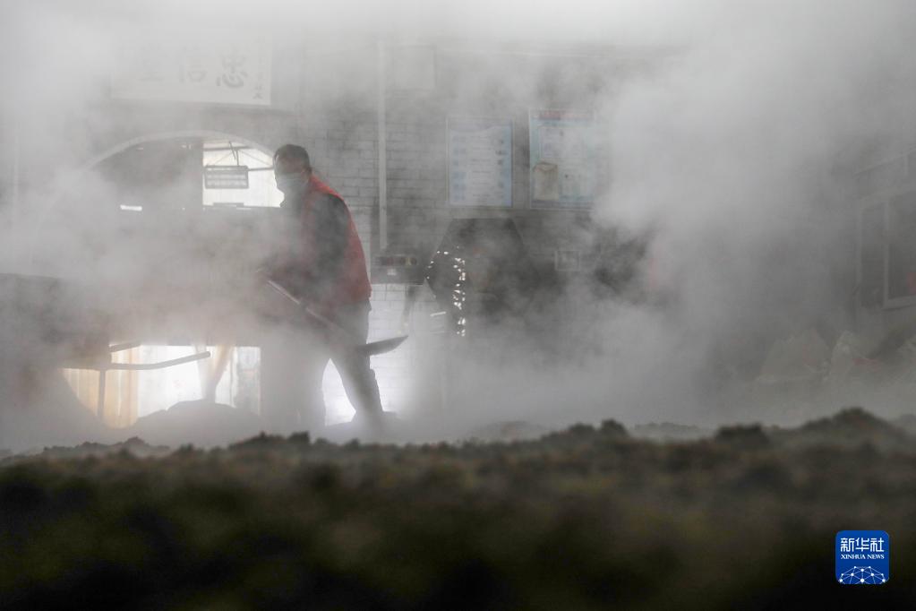 12月16日,在寶豐縣邢莊村一釀酒車間,工人攤晾蒸好的高粱等谷物。