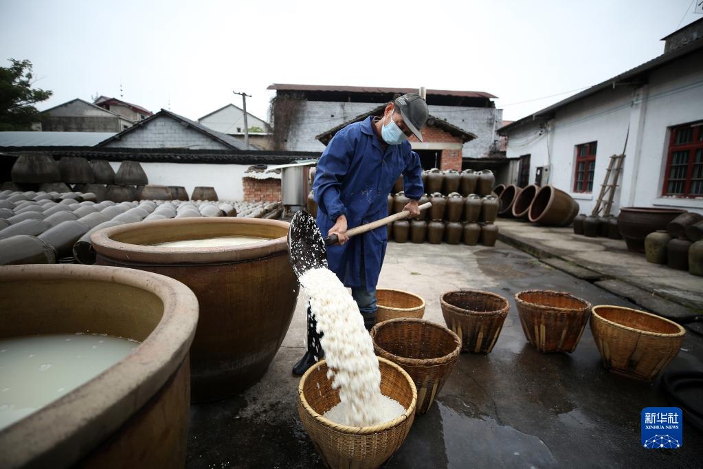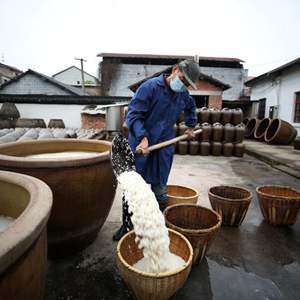 浙江省東陽市有在冬季釀造紅曲酒的傳統。眼下,東陽市的酒廠內酒香四溢,釀酒師傅忙著釀制紅曲酒,一派繁忙景象。