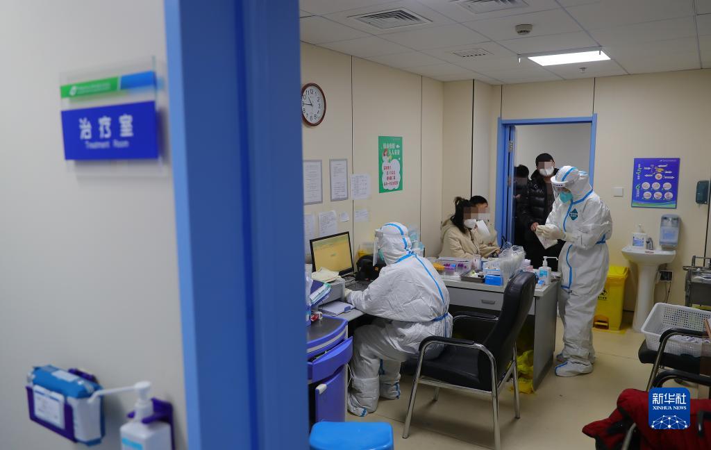 12月15日,在中國醫科大學附屬盛京醫院南湖院區發熱門診,值班醫生在為患者治療。