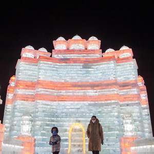 12月17日,游客在哈爾濱冰雪大世界園區游覽。