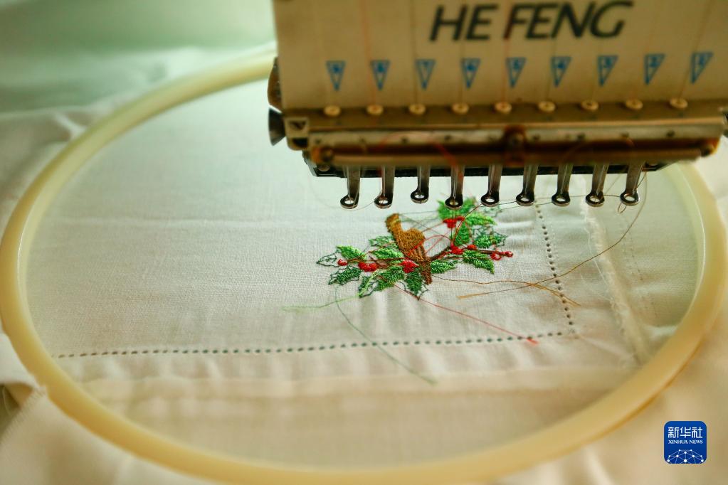隨著新年臨近,山東省青島市即墨區通濟街道花邊企業的工人忙著加緊生產,滿足國內外市場需求?!凹茨ㄟ叀笔菄壹壏俏镔|文化遺產魯繡的一種,其針法工藝獨特,造型宛如浮雕。近年來,當地花邊企業通過開發設計特色文創產品,開展線上線下定制和銷售,產品暢銷海內外市場,訂單迎來產銷兩旺的良好勢頭。