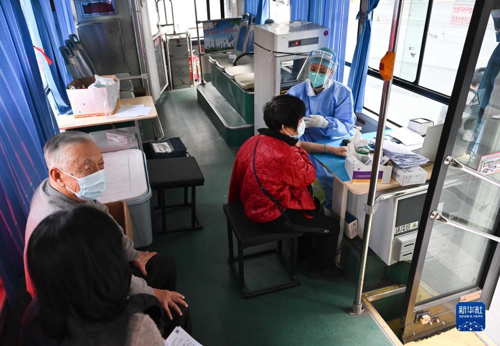 12月12日,在廣州市荔灣區廣鋼新城便民疫苗接種車上,老年居民在接種新冠疫苗。