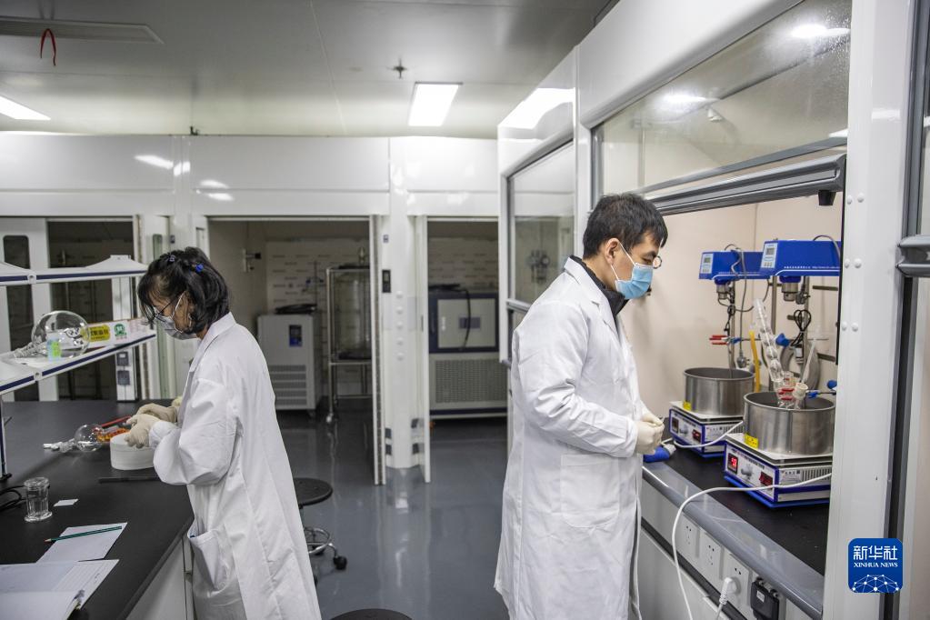 12月16日,在重慶市永川區新領先(重慶)生物醫藥一體化研發服務基地,新領先重慶研究院的研發人員在合成工藝實驗室觀察合成反應的現象變化。