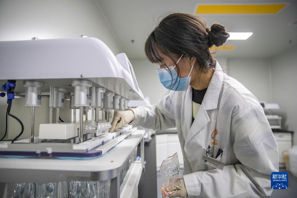 12月16日,在重慶市永川區新領先(重慶)生物醫藥一體化研發服務基地,新領先重慶研究院的研發人員利用設備對成品藥進行溶出曲線檢測。