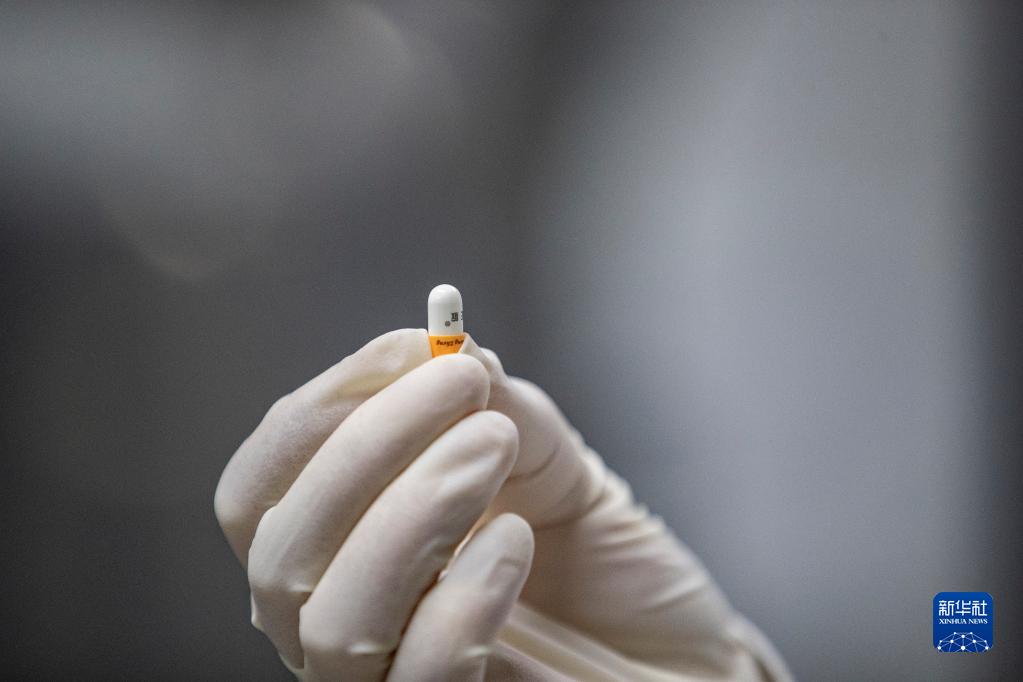 12月16日,在重慶市永川區新領先(重慶)生物醫藥一體化研發服務基地,新領先重慶研究院的研發人員查看全自動硬膠囊充填機制作的樣品膠囊藥。