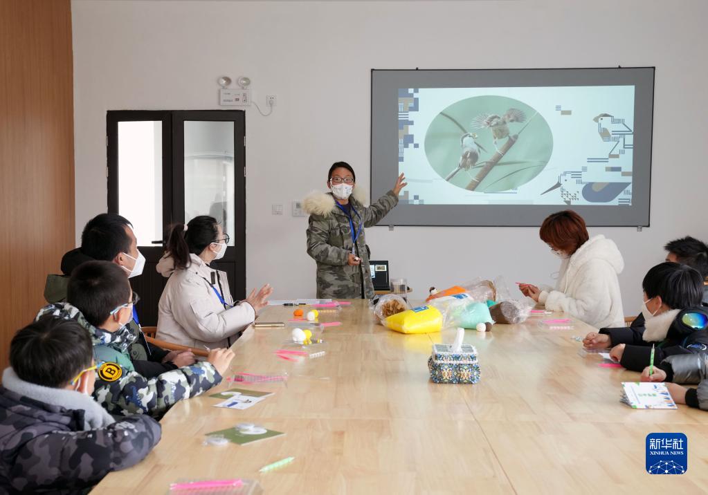 12月17日在上海崇明富圩村拍攝的濱海社區觀鳥生活節鳥類手工坊現場。