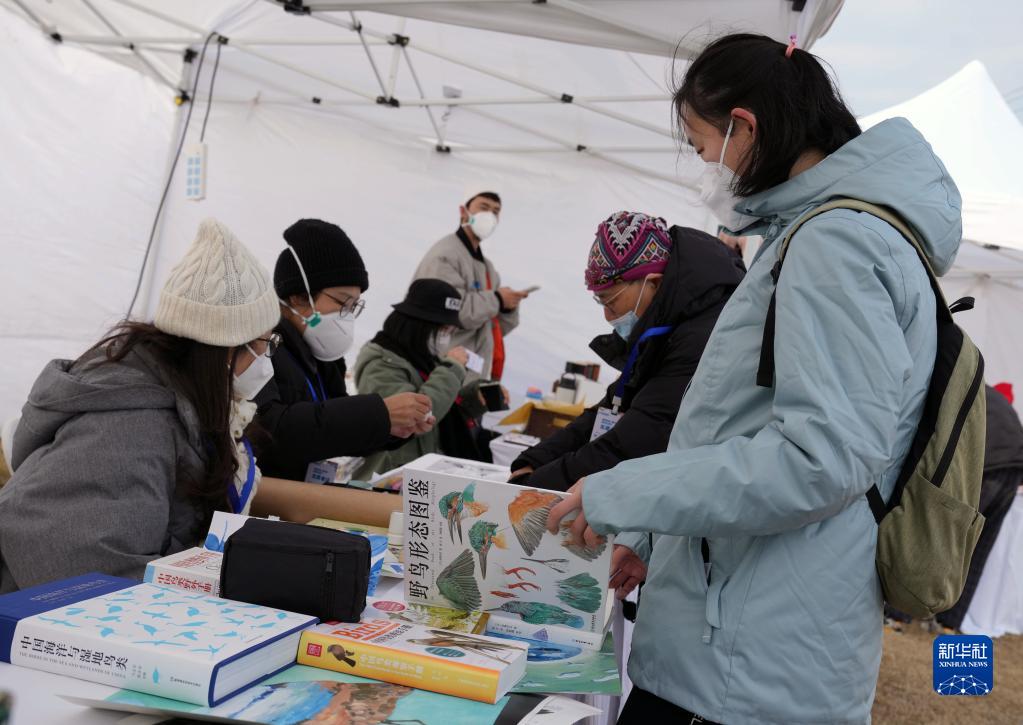 12月17日,人們在濱海社區觀鳥生活節生活集市上選購鳥類知識書籍。