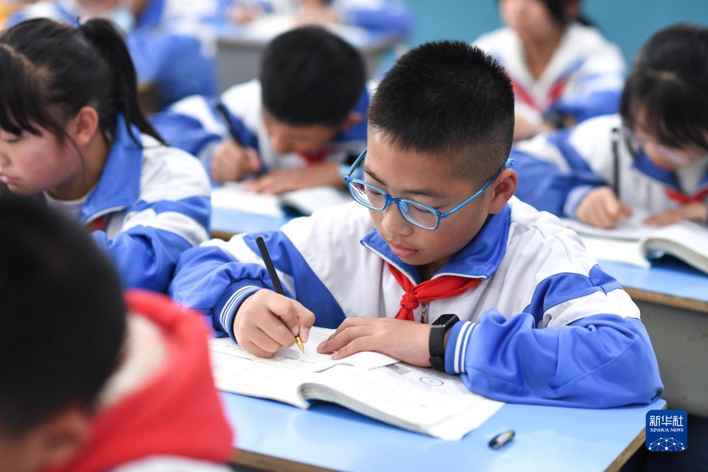 在貴州省丹寨縣城關第一小學,金粲璨(前右)在課堂上學習(11月15日攝)。