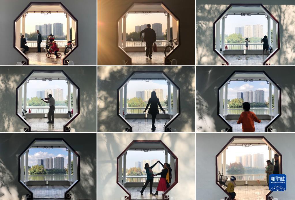 這是2020年一年內拍攝的合肥市環城公園內市民生活休閑場景的拼版照片(從左至右、由上至下拍攝時間依次為2020年的3月23日、4月24日、9月5日、9月11日、10月6日、10月9日、10月9日、11月29日、12月5日)。