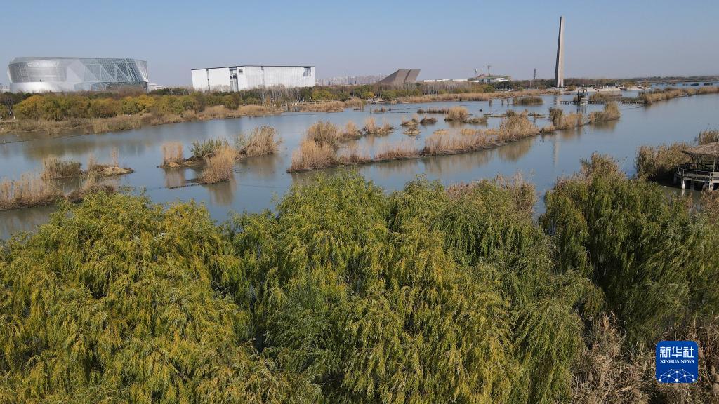 這是12月18日拍攝的安徽合肥巢湖湖濱國家濕地公園一景(無人機照片)。