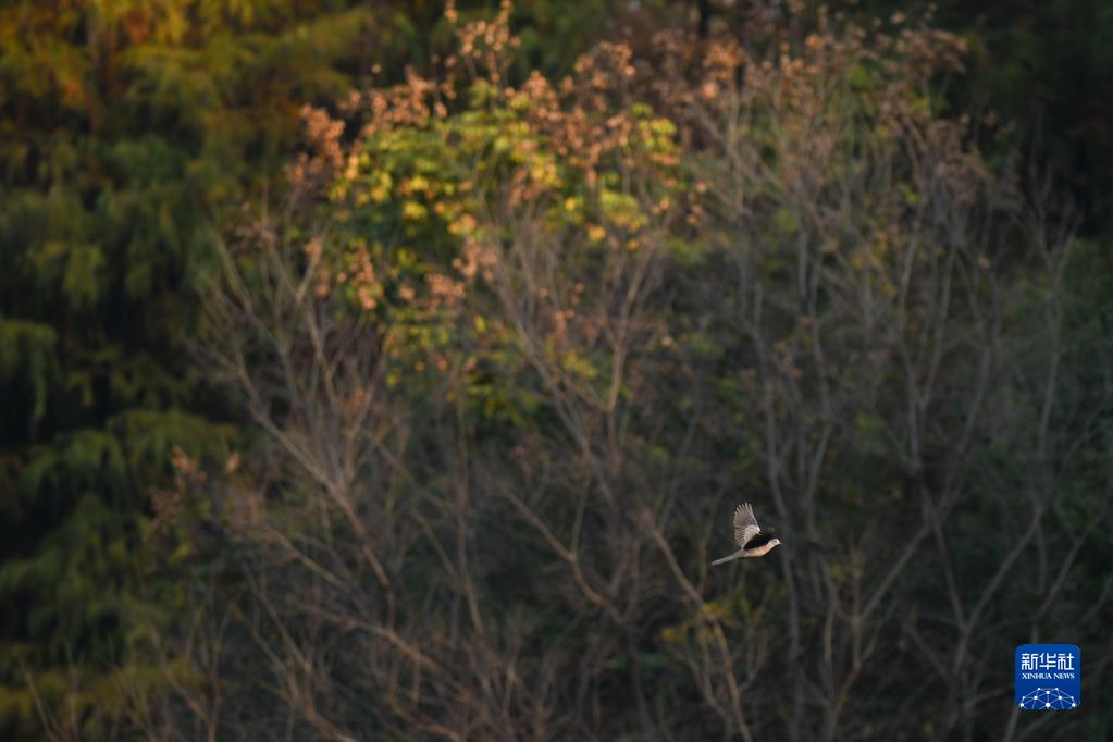 12月6日,一只鳥在合肥市環城公園飛翔。