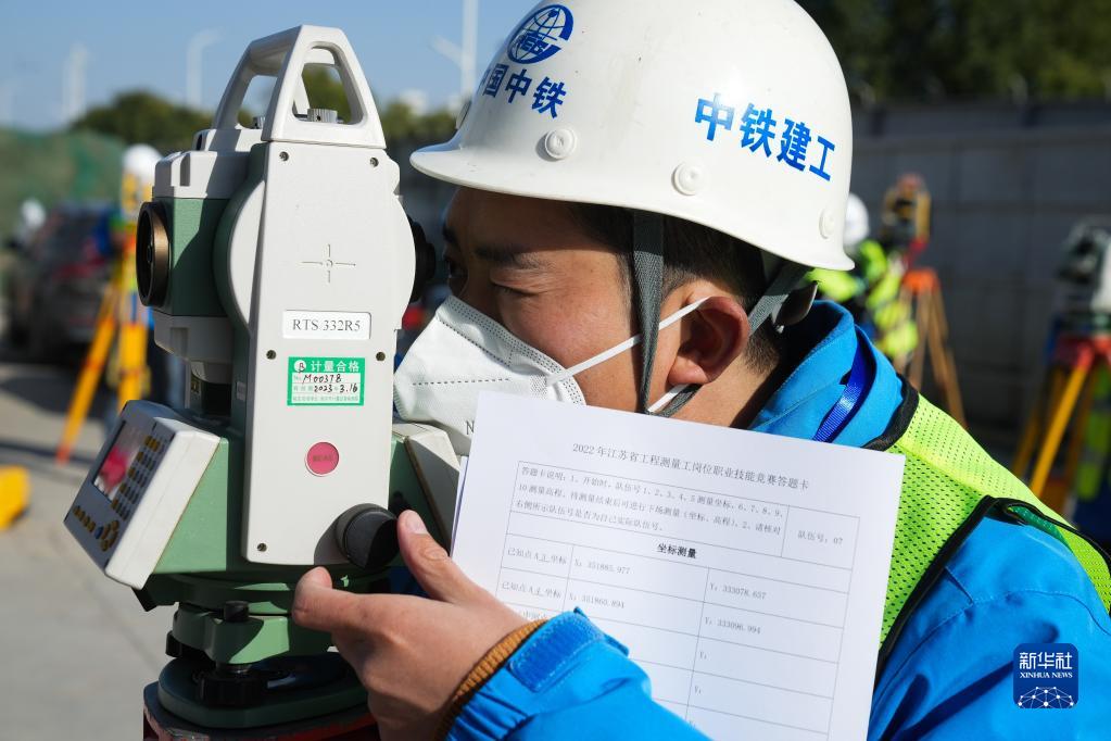 當日,2022年江蘇省工程測量工崗位職業技能競賽在中鐵建工集團南京紅山科研創新園項目現場舉行。數十名選手圍繞理論知識、實際操作展開競賽。