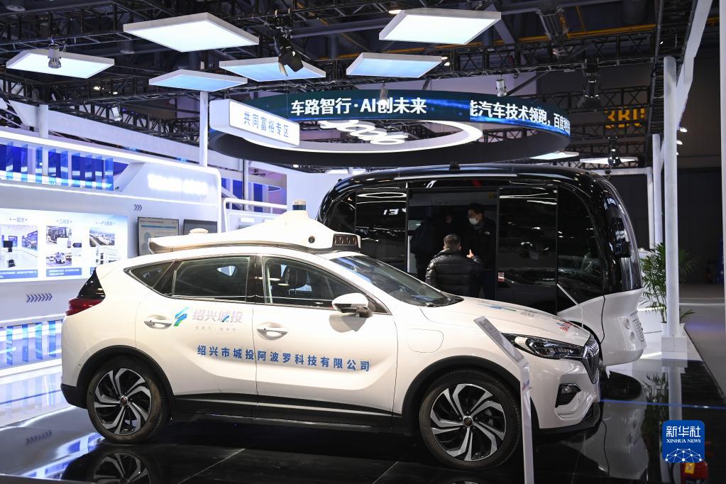 12月19日,觀眾在百度公司展區觀摩無人駕駛應用場景。