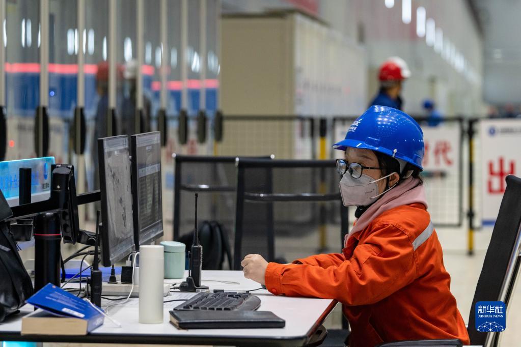 12月19日,在白鶴灘水電站右岸地下廠房,工作人員在監視機組運行狀態。